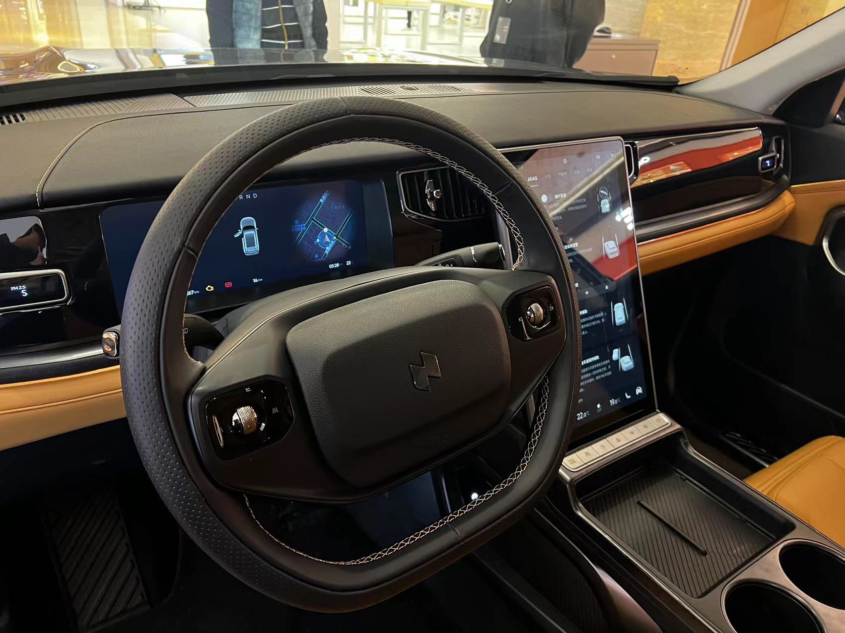 据展厅工作人员介绍,这辆灰色展车同为测试用车,由于该店为正式展厅,最终交付版本车型有望在一至两周内到店。根据他了解到的信息,正式版车型的改进之一是将在充电口处增设一个220伏、3.3千瓦的三相输出接口,可以外接电器并利用车身电量供电,后续也可能将在官方商城中上架配套的周边产品。