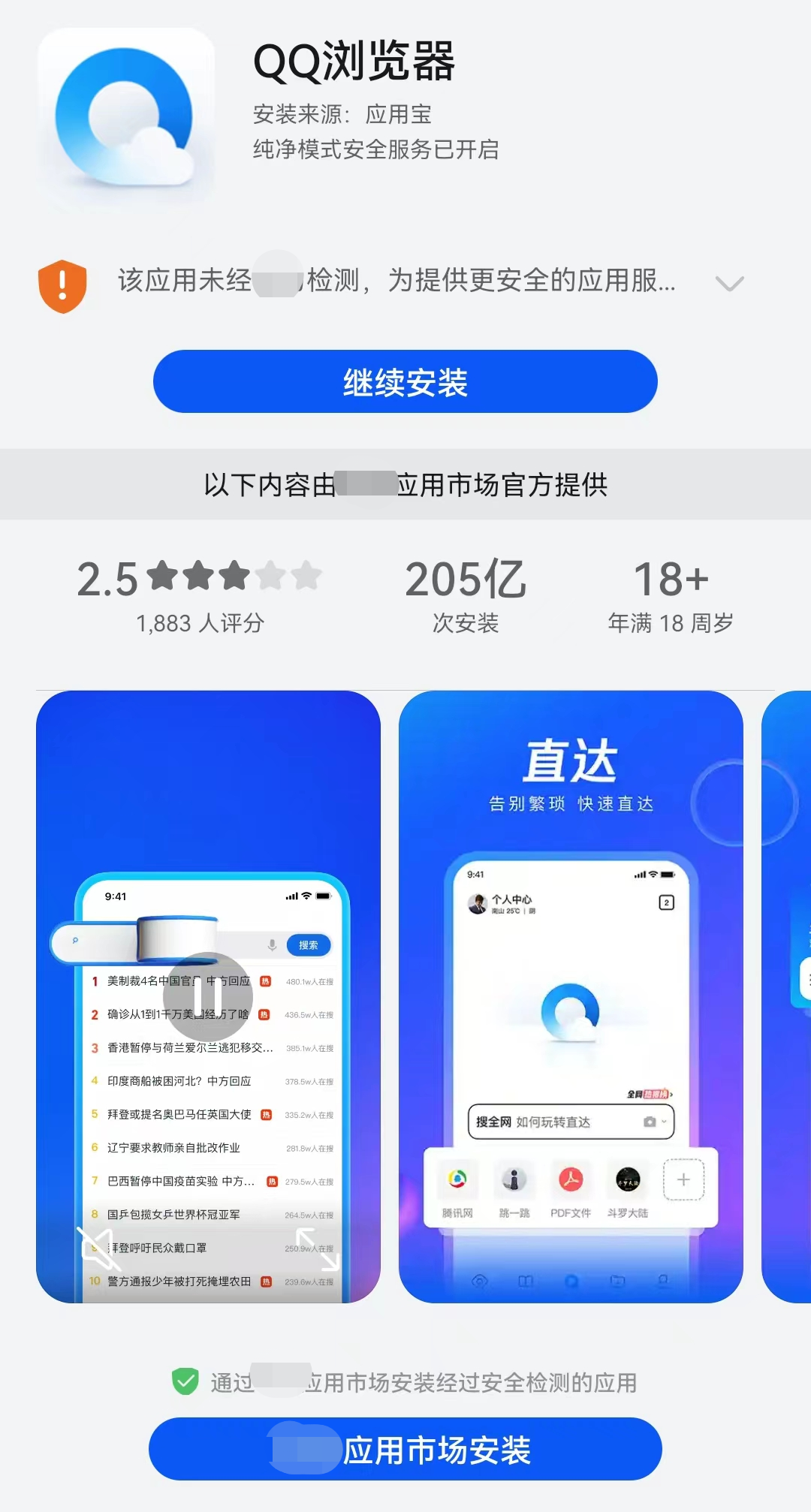 比如,在用户使用应用宝下载APP的时候疯狂弹窗,劝大家去手机自带的应用市场下载。
