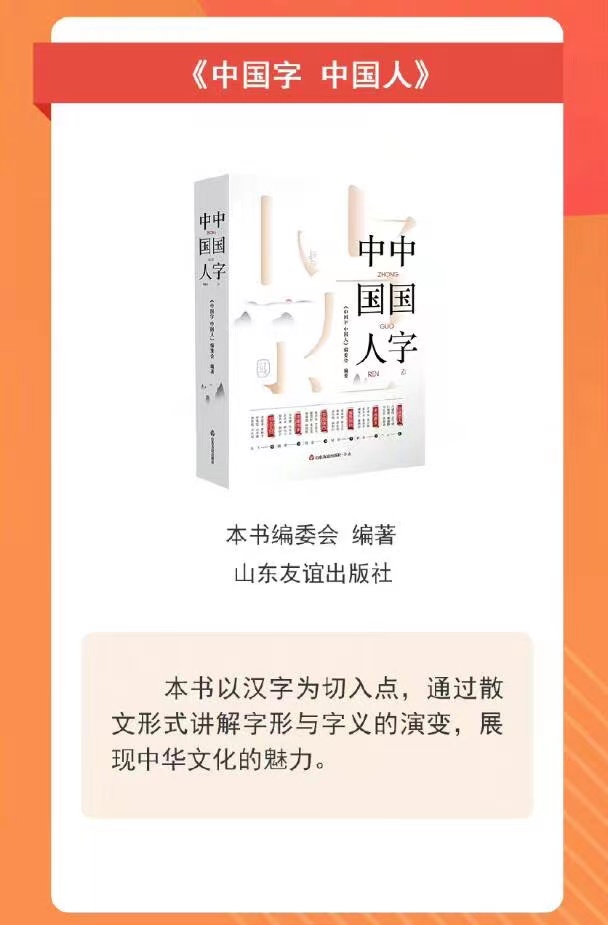 近日,由山东省委宣传部组织编写、山东友谊出版社出版的《中国字 中国人》,入选由中宣部出版局指导、中国图书评论学会组织评选的2022年中国好书·月榜图书(9月)名录。