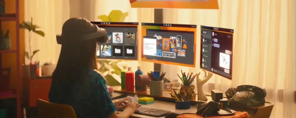 Quest Pro头显融合三台大屏显示器和工作站的产品功能,当你坐在办公桌前时,你可以通过物理键盘和物理鼠标控制现实中并不存在的数字显示器。