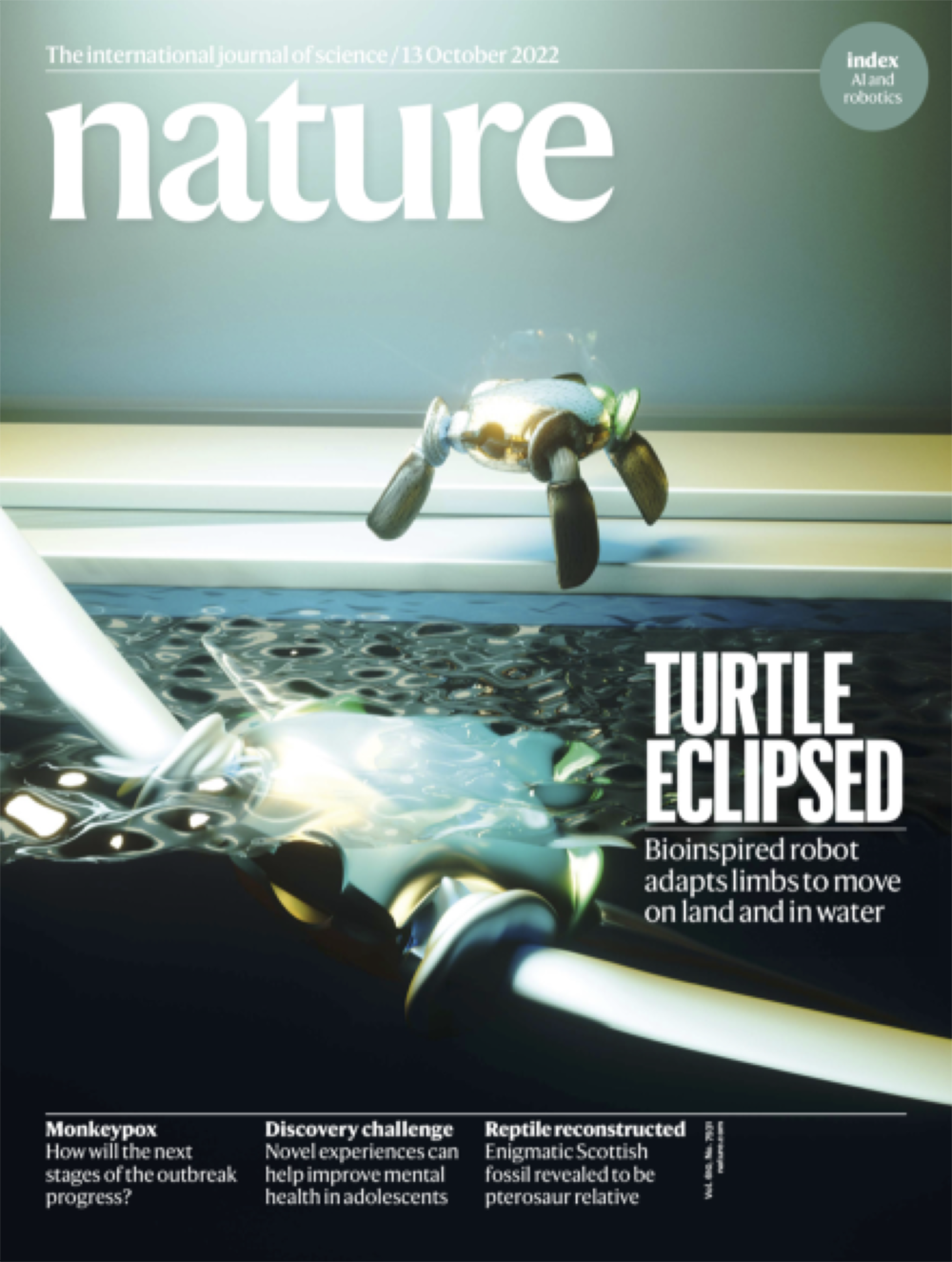 智东西10月13日消息,今日,美国耶鲁大学研发的两栖机器龟(ART)登上了国际学术顶刊Nature的封面。该研究从生物世界中汲取灵感,设计出了能同时在陆地和水域实现轻松导航的机器龟。