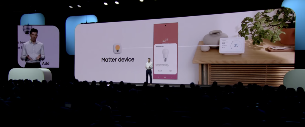 智东西10月13日报道,今天凌晨,三星在其年度开发者大会上宣布已经和谷歌展开合作,加强支持Matter标准的智能家居设备在SmartThings平台和Google Home生态系统中的协同。