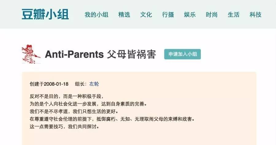 互联网时代,受众却在摆脱“沉默的螺旋”。无论他们的观点多么乖僻,总能找到拥有同样声音的人,甚至意见领袖,就像在豆瓣你甚至能看到诸如“Anti-Parents (父母皆祸害)”小组且人数超过10万,和一些非常小众的歌手、导演组群。