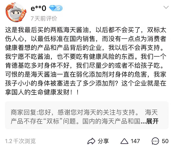 从这一角度来看,海天接连三次澄清声明之所以引起如此强烈的舆论反噬,也是因为企业没有站在和消费者平等的视角下,和消费者平等沟通。