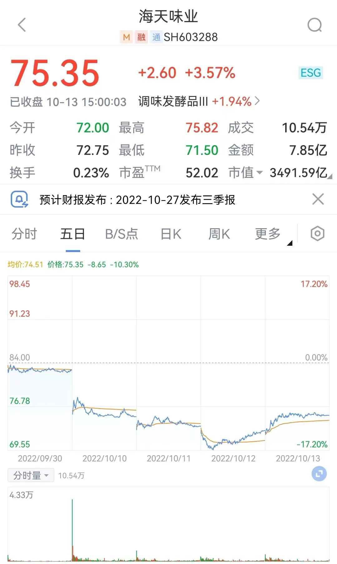 股价选取9月30日-10月13日的数据,图片来源:新浪财经APP