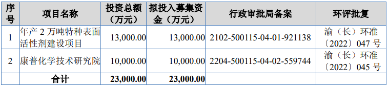 此次康普化学发行底价为14.77元/股,拟募集资金2.30亿元,投向“年产2万吨特种表面活性剂建设项目”和“康普化学技术研究院”。