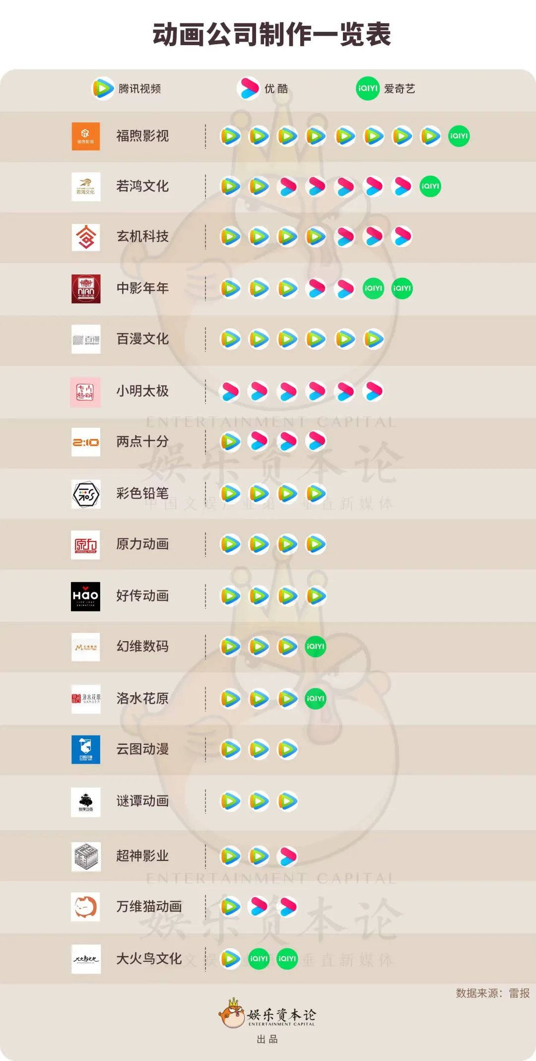 在此次制作3部及以上动画制作公司名单中,腾讯还投资了洛水花原、玄机科技、彩色铅笔、超神影业、云图动漫、原力动画、谜谭动画共计9家公司。