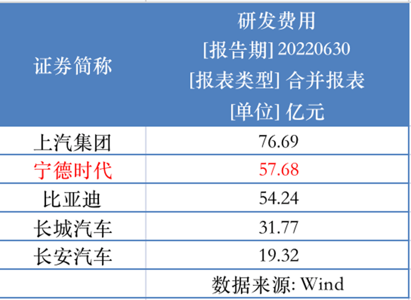 长期以来,宁德时代每年拿出营收6%左右的资金做研发,单看数据或许没有感知,放在主机厂里比一比,比绝大部分的主机厂都要多,仅次于上汽集团。
