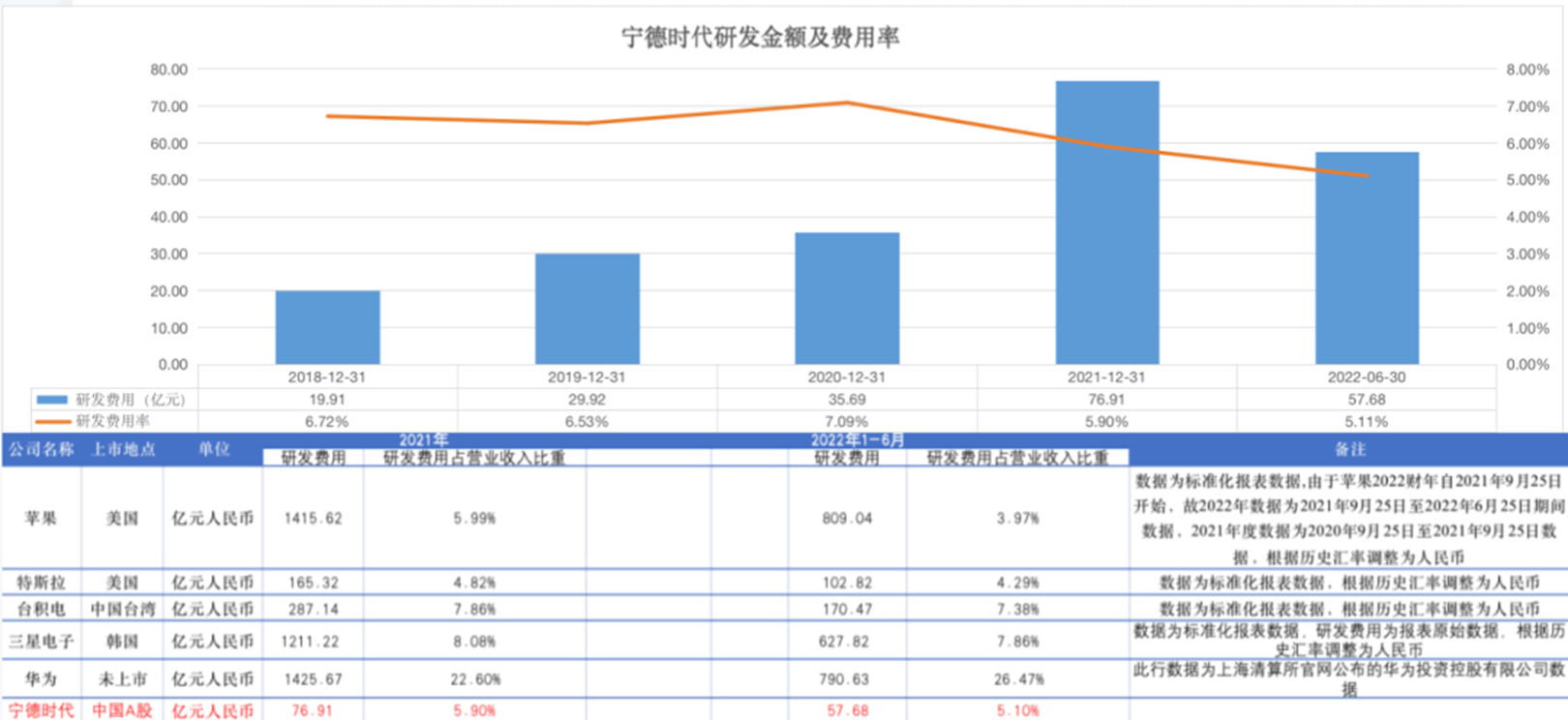 再看研发费用率,宁德时代并不输于一些核心科技巨头。