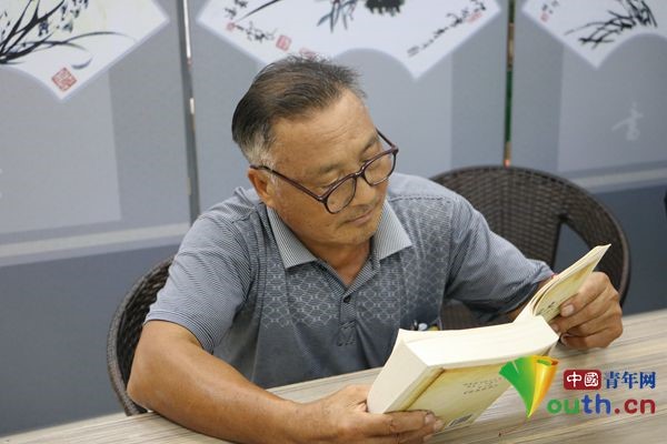 钟振源每天都会到服务站点读上一个多小时书。中国青年网记者 李川 摄