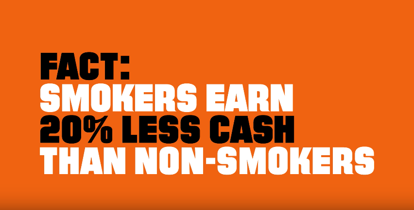 广告里描述了3个因为抽烟而花掉积蓄的年轻人,于是只能——