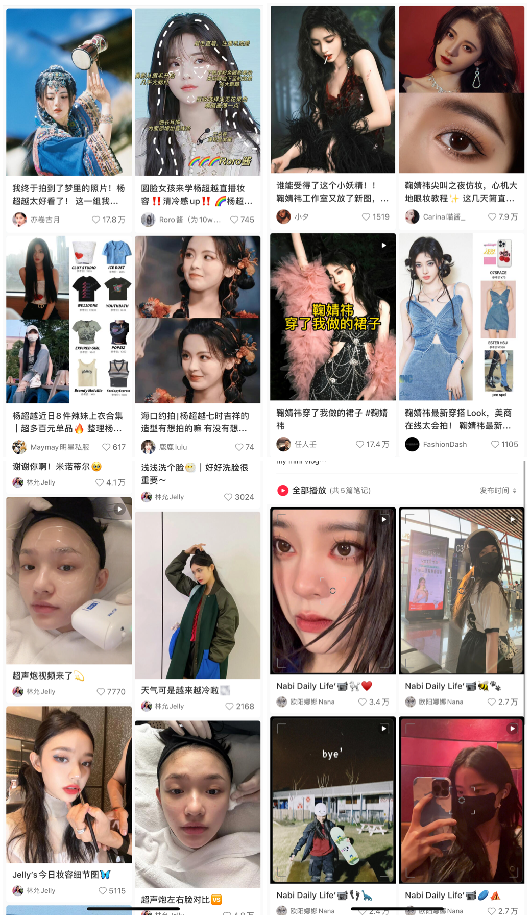 毒眸(ID:DomoreDumou)曾在往期文章中提到,新一代小花非常注重经营自己的社交媒体账号。鞠婧祎的妆容模板是美妆网红的时尚风向标,杨超越成了写真模板,林允在小红书分享医美体验,欧阳娜娜把vlog做成了标签,还会因为参加活动的妆容出圈,邀请化妆师专门录一期妆造视频。