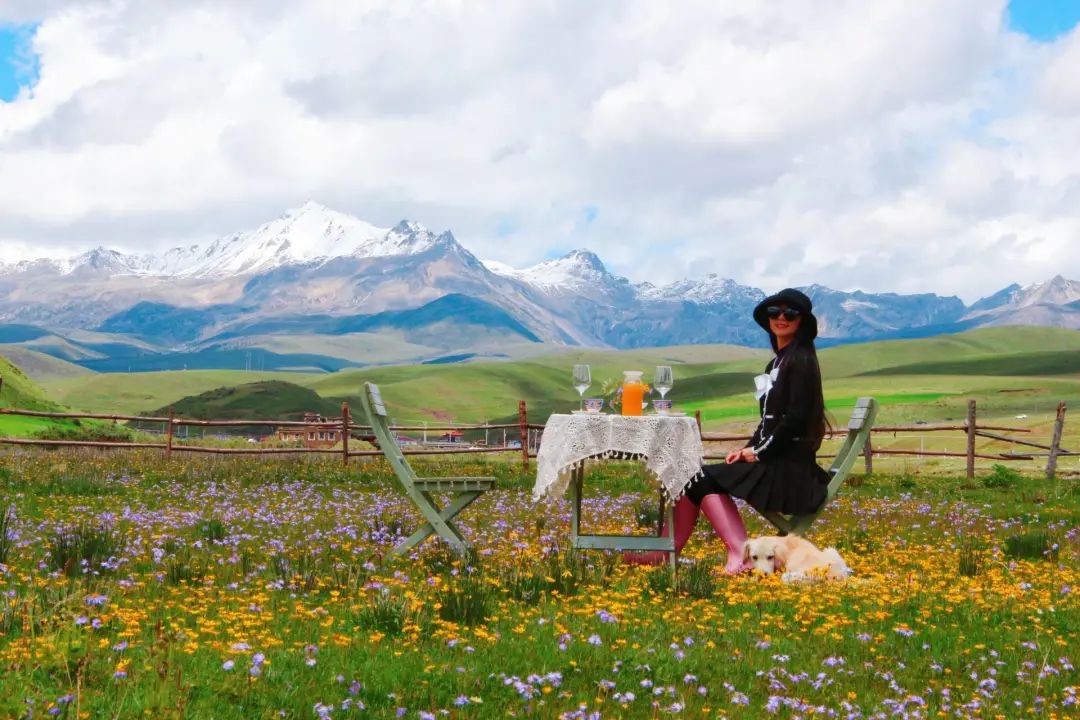 回到这边之前我没有做太多的攒钱规划,就想按着自己内心的想法来生活,不过回来之后确实一直在花我的积蓄。我选的这个地方,风景特别好,背山面水,绿草鲜花,在院子里、房间里,都能看到雪山。附近还有很大的一个牧场,可以骑马。