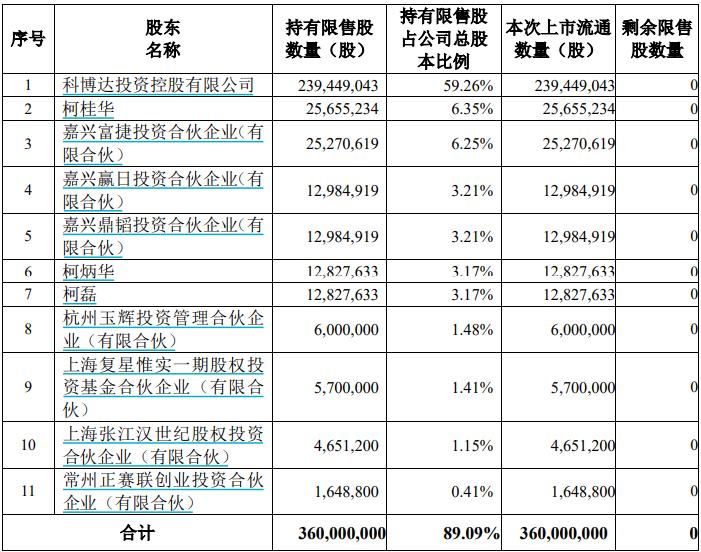 科博达三年前上市,本次解禁股东共11位,包括第一大股东科博达投资控股有限公司,实控人柯桂华、柯炳华等。