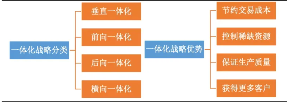 一体化理论最早是由美国经济学家保罗·克鲁格曼在1981年提出的,其重点强调跨国公司生产经营各环节的内部化。也就是从原料、零部件的生产到最终产品的定价等都纳入到企业内部,再通过将生产的各环节分散在全球不同国家地区,运用比较优势组合以及便捷的通讯和运输手段,达成各个生产环节中间产品所需成本更低的目的。垂直一体化拥有提升内部控制和协调的组织性,节约交易成本的经济性。很多时候,通过垂直一体化布局,得以加速技术的开拓,提升企业的核心竞争力,并防止被其他企业排斥,起到防御的目的。本质而言,垂直一体化既是提升经济效益的途径,也是培养自身竞争力,增强抵抗风险能力,进行主动战略规划的手段。