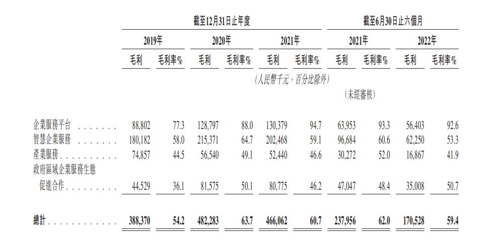 从毛利率角度看,猪八戒四大业务板块的毛利率均不低,最高的是企业服务平台板块,2022年上半年该板块的毛利率达到92.6%,2022年上半年毛利率最低的是产业服务板块,也将近42%,而智慧企业服务和政府领域企业服务生态促进合作业务的毛利率均超过50%。