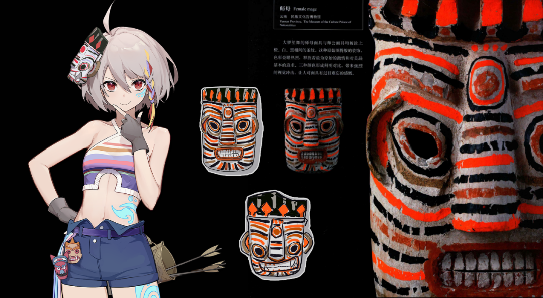 “举个例子,【傩文化】的主要表现就是【傩面具】,而抛开【傩】,面具其实是个在现代游戏中经常被使用的元素,在一些知名的作品上甚至呈现出别具一格的独特艺术审美,那【傩面具】也是同样的道理,只是看我们怎么将【傩】跟面具结合的更合理,呈现的更具特色而已”。