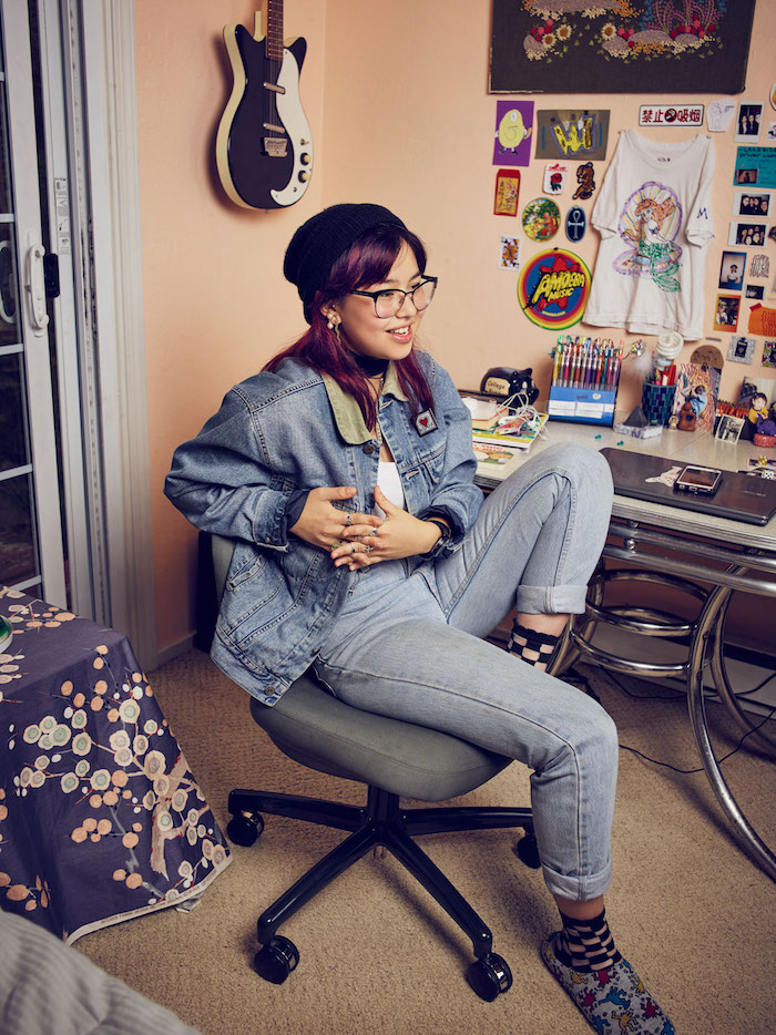 Mira来自旧金山,是Ruth Asawa艺术学校的学生。她很聪明也很漂亮,一双大眼睛让她看起来略显警惕。她告诉我,直到高中,她才真正开始交上朋友。“我很信任我的朋友们,我不知道未来会怎么样,至少现在的我很享受和他们在一起的时光。”