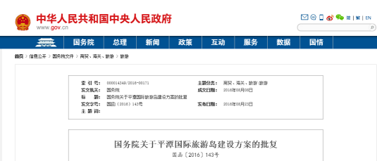 国务院批复同意平潭国际旅游岛建设方案