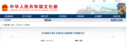 文化部牵头建立全国文化市场管理工作联席会议