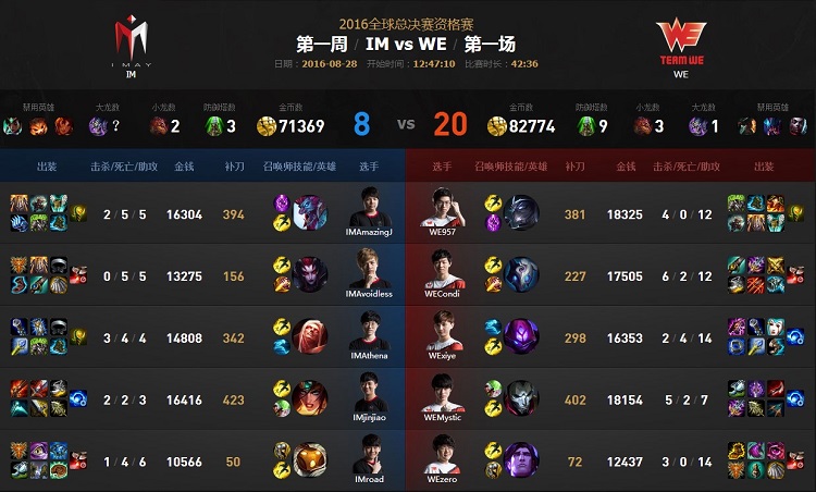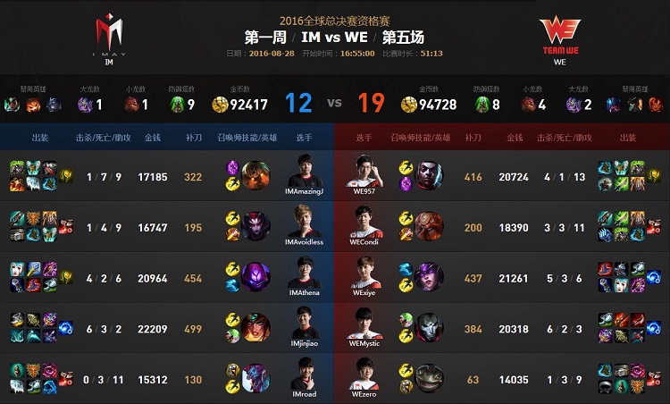 2016年《英雄联盟》S6总决赛在LPL赛区的最后一张门票,由IM战队击败WE战队最终获得。至此,代表LPL赛区参加2016年S6全球总决赛的三只队伍全部确定,由EDG,RNG和IM三支战队携手出征。