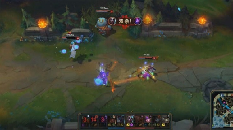 3分钟,WE打野酒桶GANK上路,配合艾克拿下IM泰坦一血。
