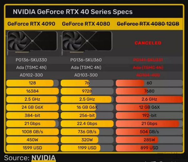 通常情况下,一款新品被取消往往只有两种原因,一种是设计指标太高,以至于工程能力无法匹配、产品无法生产出来,其中典型的例子就是苹果AirPower,这属于工程管理的失败。而另一种,则是更为常见的产品本身在设计上出现了问题,因此导致产品的市场竞争力存在一定缺陷,此次被取消的RTX 4080 12GB就属于这种情况。
