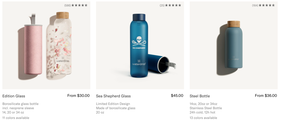 饮水器具是在2021年Waterdrop收购了Purgaty之后才扩展出来的产品线,主要包括Lucy智能瓶盖和其他一些常规的水杯、水壶等。