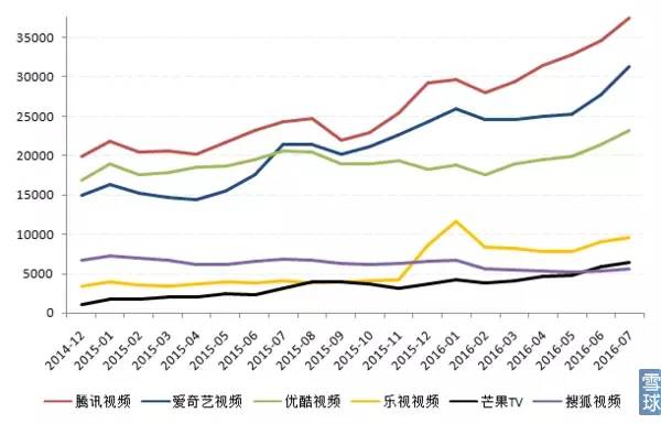 移动端六大互联网视频平台月活用户数(万),资料来源:questmobile、中银国际研究