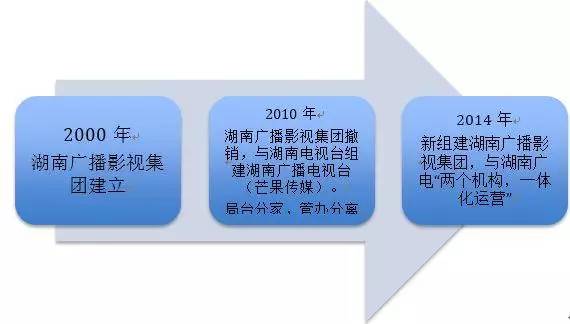 2010年6月,湖南广播电视台暨芒果传媒挂牌成立。 芒果传媒成为湖南广播电视台控股的市场主体,在2010年成立后,湖南广电计划“尽快剥离所属省级广播电视媒体的经营性资源、资产注入芒果传媒,集中快乐购公司、快乐阳光公司等新业态进入芒果传媒,进行市场运作”。2015年4月,湖南广播影视集团正式挂牌。挂牌前,湖南广播电视台作为实际控制人的快乐购于2015年1月在深交所上市。