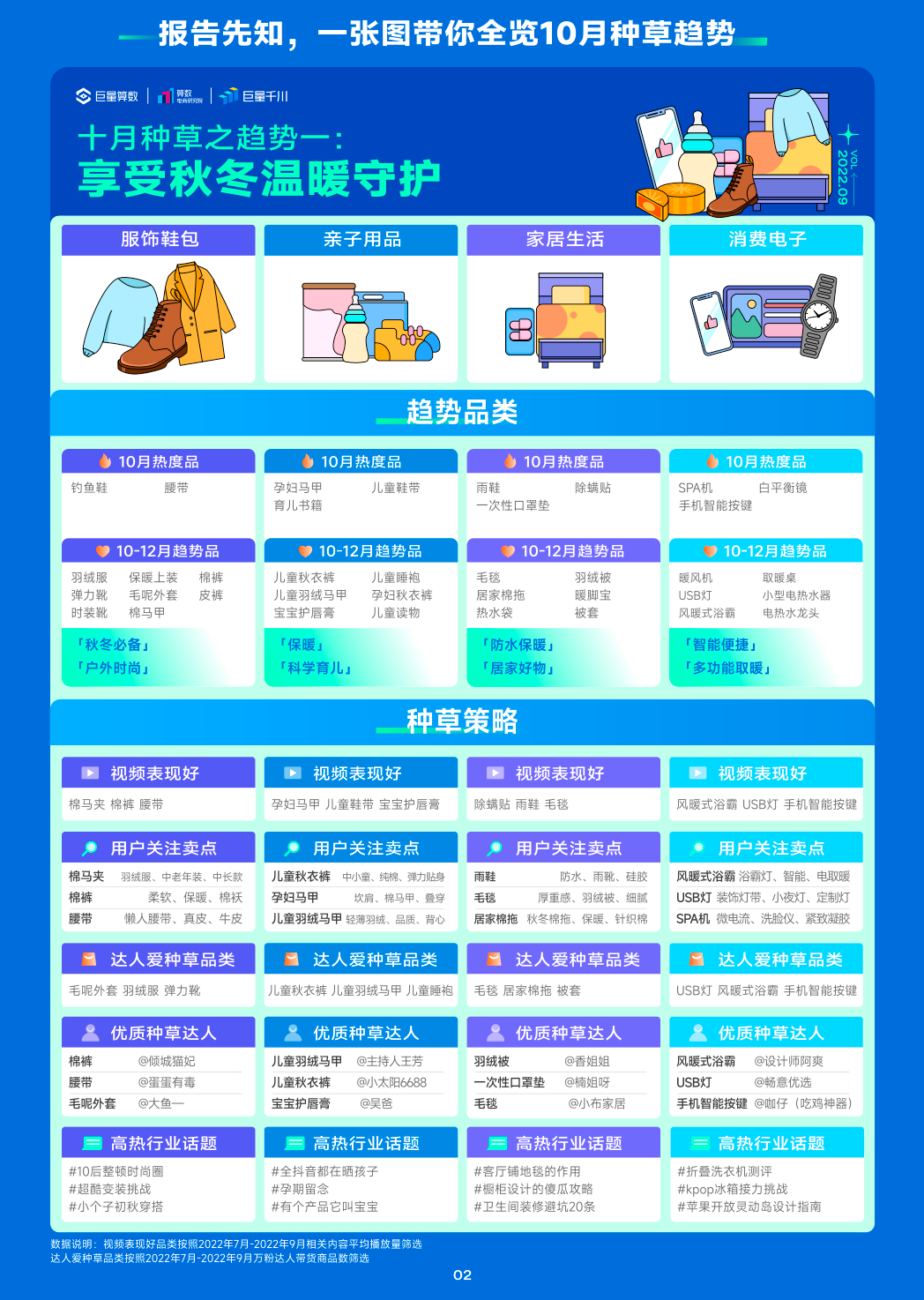 其核心目的是,带着商家和品牌方挖掘未来1-3个月,服饰鞋包、美妆个护、汽车、亲子生活等10+行业赛道会冲榜的热点内容、会热卖的商品类目。