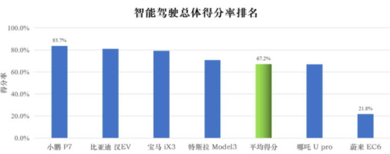 首先,根据CCRT测评数据显示,蔚来EC6、特斯拉Model3、比亚迪 汉EV、小鹏P7、宝马iX3、哪吒U Pro500等6款车型,在纯裸车不加装选装包的情况下,辅助驾驶得分情况参差不齐,且成绩极值偏差明显。