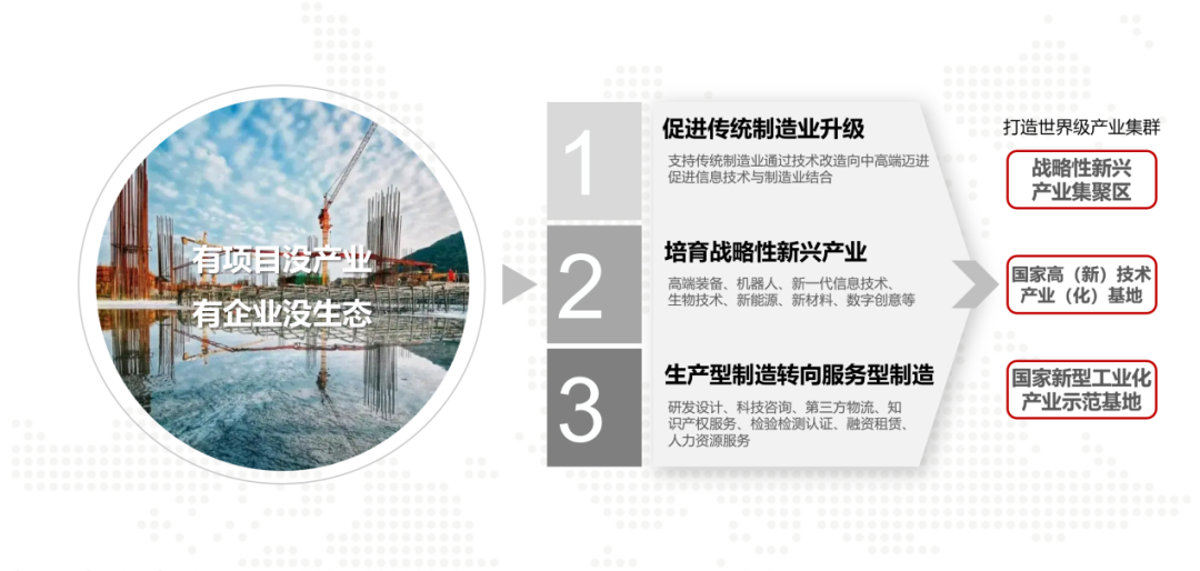 以上,系统性总结了开发区现存的问题和国家系列政策对开发区发展的关键要求和转型升级的五大关键词。开发区可以结合自身发展情况进行对比审视,梳理出可以继续发力的方向。
