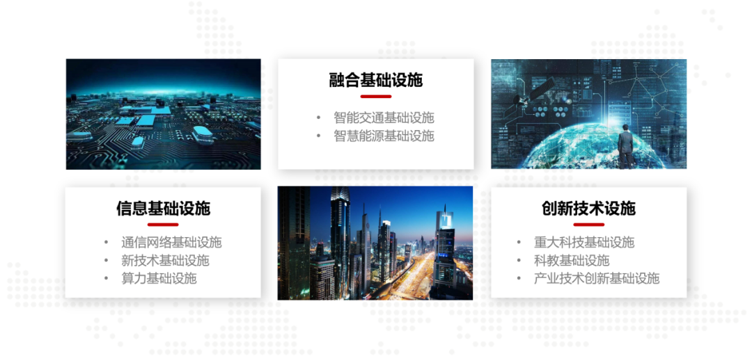 新型基础设施伴随新一轮产业变革产生,从传统设施到新型设施的政策导向,就是要求开发区在布局基础设施时,不要局限于传统的七通一平设施,还要考虑信息技术设施、融合基础设施、创新技术设施的布局,国家“十四五”规划明确了三大类型的新型基础设施内涵,指出要打造系统完备、高效使用、智能绿色、安全可靠的现代化基础设施体系,助力产业创新发展。