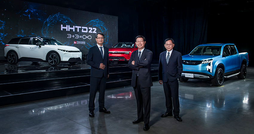 今天鸿海科技集团(富士康母公司)举办了2022鸿海科技日(HHTD22),并发布了两款自主研发的电动车:跨界旅行车MODEL B和电动皮卡车MODEL V,还正式展示了纯电动中型SUV MODEL C量产款,预计MODEL C将在明年交付。
