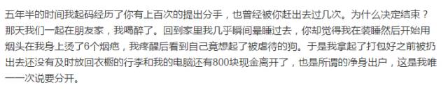 在他讲述与前妻感情生活的微博长文中,我们不难看出,在亲密关系中,前妻对他实施的暴力行为给这个小伙子留下了极深的阴影。