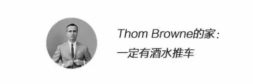 与Thom Browne的设计从来都把不同年代的廓形与颜色跳脱地巧妙组合一样,他的家也在多年代的回溯感中找到平衡一致。从1920年代的Christofle饮料小拖车,到1960年代的屏风,“经典、质地”是他的家所呈现的重要一面。不同的酒水推车出现在走廊和客厅,可见他喜欢喝酒,在一次和《Dazed&Confused》的采访中也曾提到“时装周开始前我们没有什么惯例,只是每晚都要喝”。