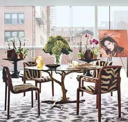 Diane von Furstenberg位于纽约曼哈顿的楼顶宅邸,就是个巨大的玻璃樽,有名得快成旅游景点了。她的家里充斥着各种醒目的色彩和印花,除了不少自家品牌的 家居用品,还有诸如Andy Warhol给她画的肖像这样的珍品,阳台上有个大草坪,种着各种逼格极高的植物。对了,楼下就是她的时装店,这一点我很喜欢,上班近。