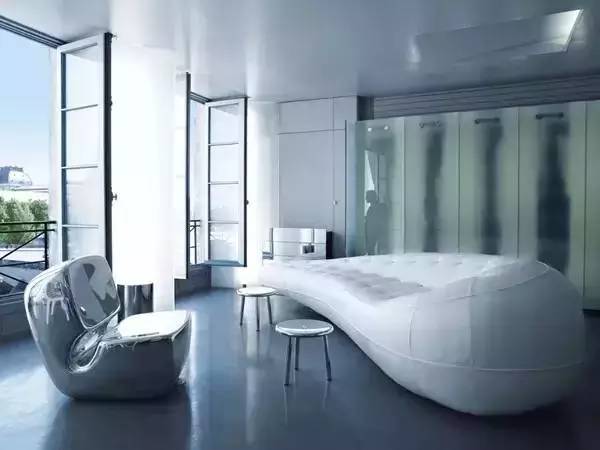 虽然 Karl Lagerfeld 从来不安定,他的度假屋遍布各地,但最中心的家依然在巴黎。他在巴黎的家有一个露台,可以看见不远处的卢浮宫。而这个露台里面的空间,却更像城市里暗藏的太空仓,充斥着黑与白之间的中灰色调,简单、流线、充满无尽的未来感。“我的家如同降落在这座城市的飞船,在这里你不会觉得被大地束缚。”