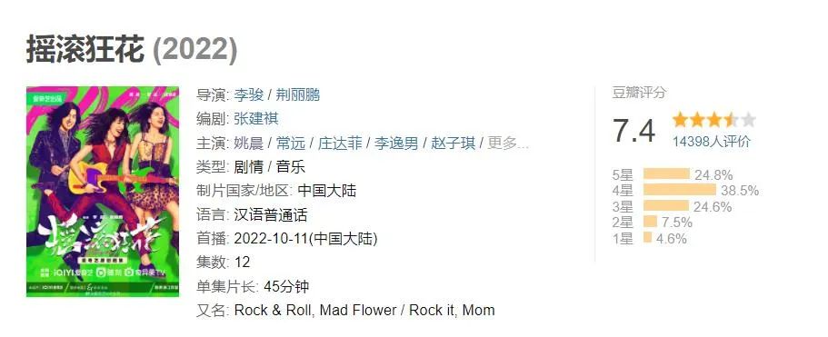 将讲故事的视角落在一名女性身上,在这些年的国产剧市场实际上并不少见。仅在姚晨出演的作品中就有《都挺好》、《送我上青云》等,而《摇滚狂花》之所以特殊,在于它选择塑造一位“摇滚乐手”,不仅让一个全新的职业定位进入了屏幕,围绕着这个角色,故事中的母亲、女儿以及其他身份,也随之变得不一样。