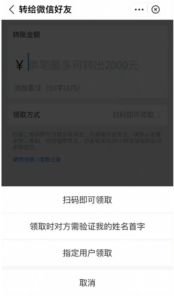无冕财经研究员尝试“转微信好友”功能时了解到,不需要收款方的账号即可转账,单笔最多可转出2000元,超过24小时未领取会自动退回。
