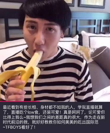哦,春花不是说香蕉,是他那张蛇精脸的出现就已经没有了道德底线。他还非要装作骄傲小公主,称赞自己可爱不说还顺带炮轰了TFboys!!!