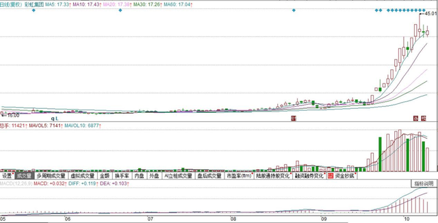 目前来看,各路资金对彩虹集团的炒作似乎并没有结束,其股价在10月17日经历了小幅调整后,18日又继续上涨。