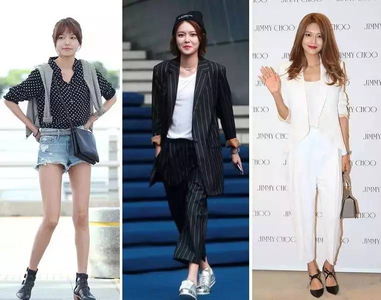 亚洲女孩天生比例不如欧美女生,但是如崔秀英这样选择短裤或者九分裤,无论搭配平底鞋还是高跟鞋,一样能够九头身。