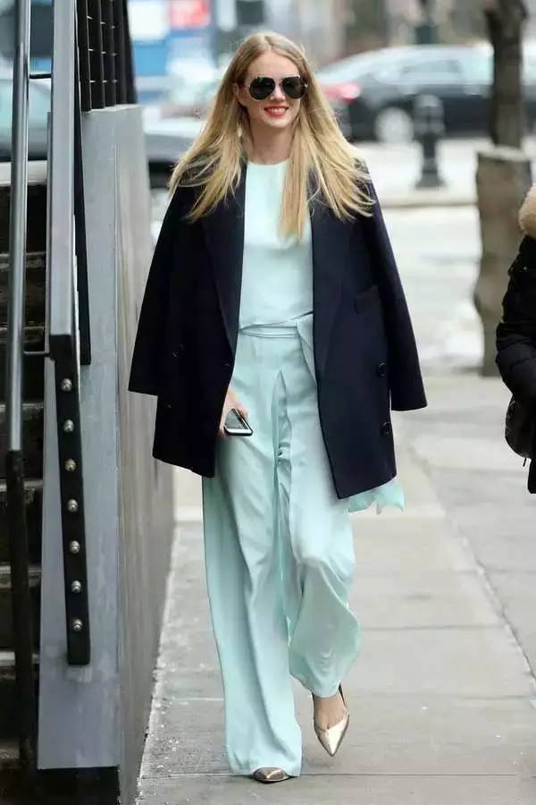 高腰阔腿长裤绝对是阔腿裤里的经典款。完美的拉长腿部线条,给人“胸以下全是腿”的视觉效果。