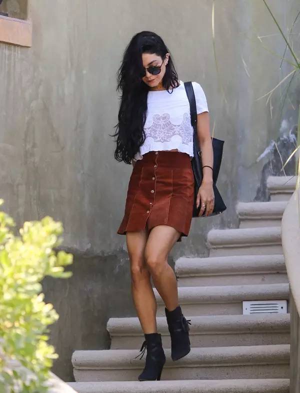 一条麂皮短裙轻松变身“170cm女孩”。搭配短靴适合腿型好的女生,否则加一双高跟鞋身材看起来也会很好。