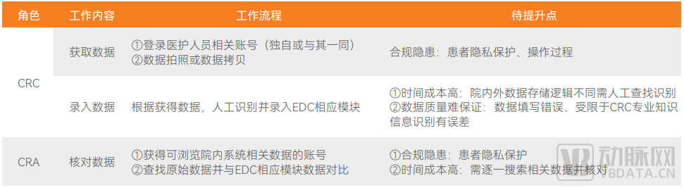 可见,要解决数据采集环节存在的合规隐患及降低高占比的成本支出,关键在于用技术替代人工。CRC的工作内容,技术可以助力将院内系统与EDC直接对接,并让EDC需要的数据自动被填写,CRC则只需要做签字确认。