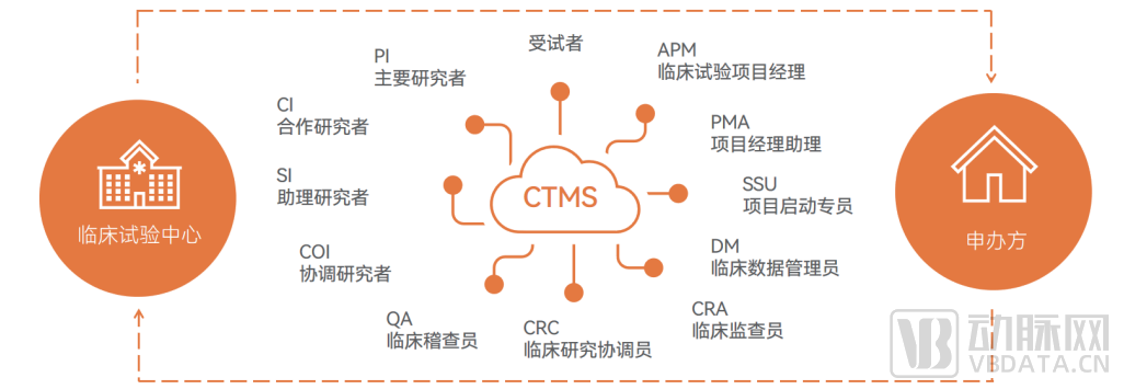 项目管理的基础需要数据互联互通。临床试验涉及的参与者众多,来自临床试验中心和申办方两端,又分为受试者、研究者和工作人员三类。