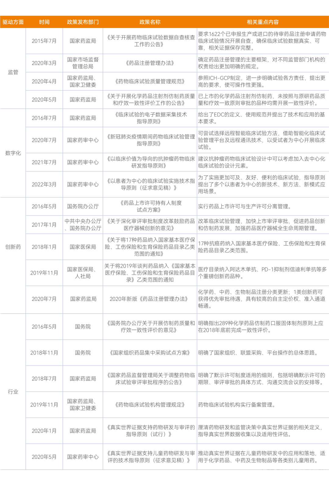 驱动数字化临床试验领域发展的相关政策盘点,资料来源:动脉橙数据库,蛋壳研究院制