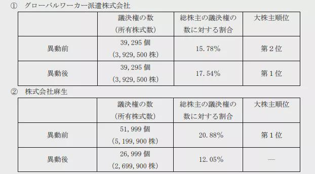 一家名为“グローバルワーカー派遣”的公司,以17.54%的股份,一跃成为第一大股东。